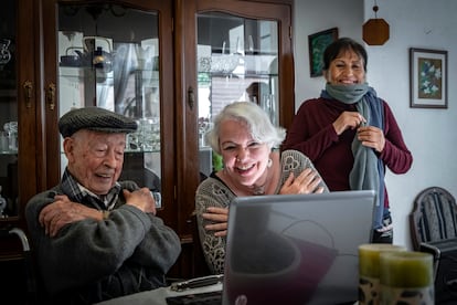 Robles tiene 95 años y vive en una casa baja con jardín en la alcaldía de Tlalpan, al sur de Ciudad de México. Sufre deterioro cognitivo leve —la etapa previa a la demencia—, artrosis, problemas de próstata, y no puede agacharse ni erguirse demasiado por una vieja fractura en la cadera. Aun así, dice, es feliz y está contento con lo que tiene. A las seis de la mañana, cuando se despierta, su cuidadora Dulce le deja la ropa del día en la andadera. Mientras ella le cambia el calzón desechable, le ayuda a ponerse los pantalones y le ata los zapatos, “él solito” se abotona la camisa, se peina y se aperfuma. Después, su mujer, Lupita, le acompaña al patio de casa y, entre rosales y siemprevivas, hace su primera ronda de actividad física, levanta “sus pesitas” y hace sus ejercicios para las piernas. Unos minutos antes de las tres llega su momento favorito del día. Dulce trae la computadora a la mesa del comedor y le conecta a la clase virtual del Centro Mexicano Alzhéimer, en la que lleva ya tres años. En la pantalla se encuentra con otros 10 pacientes, cada uno en una fase distinta de la demencia.