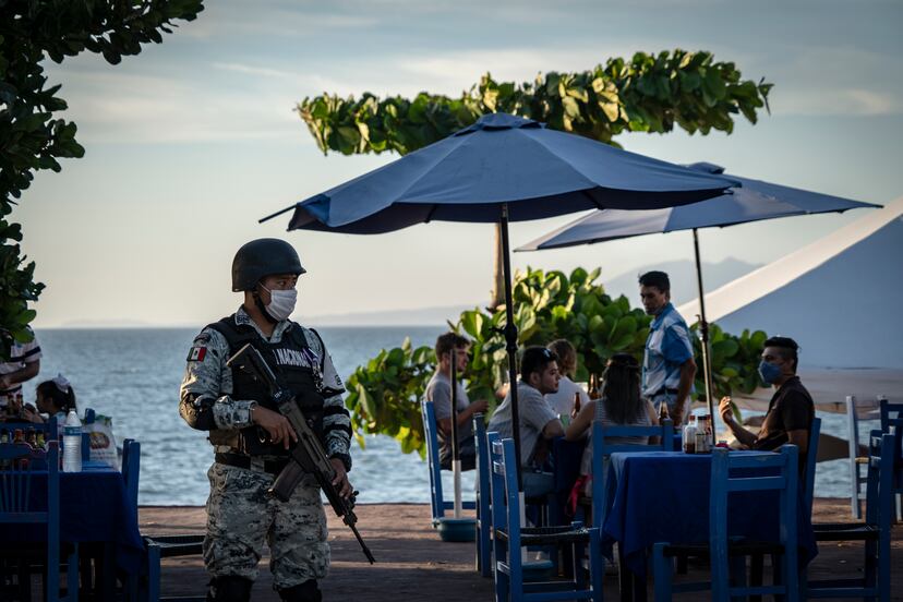 Van vestidos de camuflaje. A veces llevan armas largas, pasamontañas, y otras, solo patrullan su calle como si se tratara de la policía del pueblo. Pero el carácter esencial de este cuerpo, que pospone su mando civil al menos cuatro años más, está claro a simple vista. Es el Ejército, o al menos, hombres vestidos de soldado, los que cortan carreteras, le piden a uno identificarse, persiguen criminales, vigilan las esquinas, además de enfrentarse al narco, construir trenes, aeropuertos y distribuir vacunas en México. Están en todas partes. Y esta última semana, dos momentos clave han desvelado su verdadero rostro en Jalisco. A la mínima amenaza, la máxima castrense. Disparos al aire que han provocado heridos de bala en una manifestación en Ocotlán este fin de semana y unos días antes, un informe que alertaba sobre el excesivo uso de la fuerza de la institución que disparó contra una camioneta donde viajaba una pareja, la mujer embarazada murió a tiros.