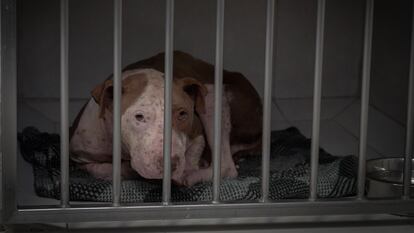 Uriel pone sus orejas hacia atrás y mantiene una mirada amistosa. Sale de su espacio con dificultades para mantenerse sobre sus cuatro patas y con restos visibles de su antigua vida: la piel rojiza por la sarna y un collar incrustado en el cuello, que le ha dejado una cicatriz tras haber recibido las curas pertinentes. El pitbull es uno de los 107 perros que, desde hace unas semanas, la Procuraduría Ambiental y del Ordenamiento Territorial (PAOT) ha tratado de rescatar y reubicar desde un predio localizado en San Miguel Topilejo, al sur de la Ciudad de México. La dueña del lugar había acogido a los animales (“con buena voluntad”, cuenta uno de los vecinos), pero allí vivían en malas condiciones: a la intemperie, con enfermedades, algunos amarrados a cadenas y otros visiblemente desnutridos.