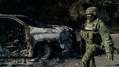 Dos niñas que no llegan a los seis años juegan a las carreritas en el patio de su casa en Jesús María. De cochecitos, sostienen en sus pequeñas manos unos pedazos de plástico de una camioneta destrozada. De pista usan el suelo, una alfombra de trozos de vidrio y casquillos de todos los calibres. “Cuidado”, le alerta una a la otra. Esquivan un montículo de chalecos antibalas amontonados con uniformes militares ensangrentados y siguen jugando sin entender lo que pasa a su alrededor. A sus pies tienen un poblado perdido en el medio de la sierra sinaloense que fue arrasado por la última batalla del Ejército mexicano contra el cartel de Sinaloa. A unos 100 metros, la casa del narcotraficante Ovidio Guzmán, aún con las puertas abiertas, pero vacía por dentro. Con el orgullo iluminándoles el rostro, un grupo de soldados custodiaba el sábado el lugar como a un testigo de la sanguinaria victoria que se llevaron el jueves, que dejó un saldo de 29 muertos —entre ellos 10 militares— y 35 heridos.