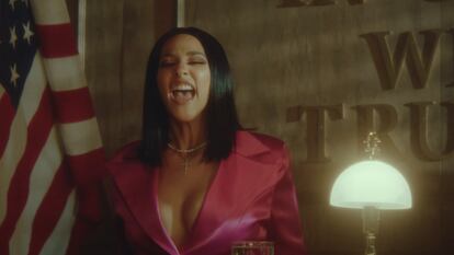 Se trata de una escena del video musical de ‘La Abogada’, tema con el que Colón Miró debuta en el medio artístico. La puertorriqueña escogió para su primer sencillo un escenario familiar: un tribunal ficticio donde se pasea cantando sobre el desamor.