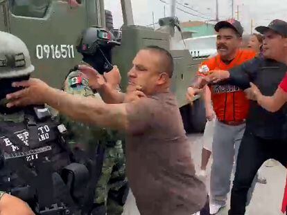 Humberto Suárez, de 48 años, es la imagen del dolor en Nuevo Laredo. En un vídeo que ha empezado a circular este martes, el hombre aparece sosteniendo una sustancia viscosa, con la mirada perdida. Es su hijo, una parte del muchacho, restos de la balacera. Él grita. “Yo lo que quiero es justicia”, dice ahora. “Se supone que los militares están entrenados para esto y ni siquiera les encontraron nada”, lamenta.
