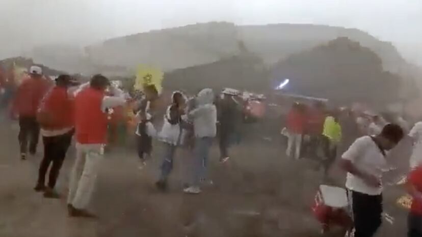En los videos publicados puede verse el momento exacto en el que la lona que estaba dispuesta para cubrir a los asistentes cae sobre ellos y también sobre los templetes que, a su vez, comienzan a tambalearse mientras varias personas los sostienen desde abajo. ¡Salgan agachados! ¡Salgan todos! Se escuchan voces entre los gritos de desesperación de algunas personas que tratan de salir con la lona encima. En las imágenes se observan a personas de la tercera edad y familias enteras apurándose a salir del lugar, mientras otras ayudan a sostener la estructura sobre ellos. El evento de campaña de esta tarde, estaba previsto para iniciar a las 17.00, pero minutos antes el viento derribó todo. Autoridades locales y estatales han acudido al sitio para dar atención y ayuda.