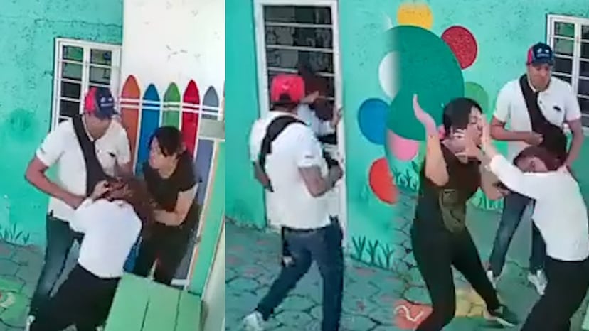 En el incidente, ocurrido este lunes, se ve a los padres acompañados de su hijo, quien señala a la profesora diciendo “ella es la mala”. Luego de golpear a la mujer, la pareja lleva a la maestra hasta un sitio fuera del encuadre y ahí, según la narración de la víctima, la obligaron a hincarse y pedir disculpas al niño.