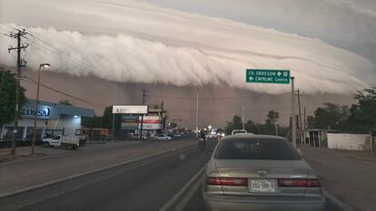 Una espectacular tormenta de arena ha caído sobre Guaymas y Empalme, en Sonora. Desde el mar se apreciaba cómo la gigantesca nube de color tostado avanzaba por el cielo hasta cubrir las poblaciones, que han dejado una pátina de polvo sobre las casas, los coches y las calles. El fenómeno, que se registró el jueves por la tarde, ocasionó cortes de luz que, según la Comisión Federal de Electricidad (CFE), afectaron a más de 55.000 usuarios. Numerosos videos dejaron constancia de la belleza natural del fenómeno, que afortunadamente no dejó daños que lamentar.