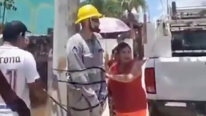 Un grupo de habitantes de Yucatán amarra a un poste a un trabajador de la CFE por la falta de electricidad