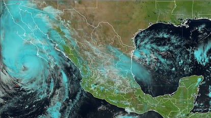 El huracán Hilary tiene en vilo a México y Estados Unidos ante el potencial de que sus lluvias sean “catastróficas”, según ha descrito el Centro Nacional de Huracanes de EE UU este sábado. La tormenta se ha degradado en las última horas a la categoría 2 de la escala Saffir-Simpson con vientos de 175 kilómetros por hora y rachas de hasta 215 kilómetros por hora. Hilary se encuentra en el océano Pacífico frente a las costas de Baja California Sur, en México, pero la previsión meteorológica estima que su fuerza le impulse en las próximas horas al norte de la península de Baja California donde tocará tierra dos veces durante el domingo. El Servicio Meteorológico de México apunta a que durante la madrugada el huracán tocará tierra en Punta Eugenia, Baja California Sur, para después volver al océano y hacer una segunda entrada en las costas de San Quintín, Baja California.
