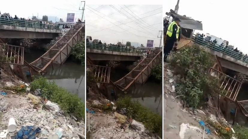 Un puente peatonal en los límites de los municipios de Nezahualcóyotl y Chimalhuacán, frente al panteón Los Rosales, se desplomó este jueves cuando una decena de usuarios cruzaban a través de él.