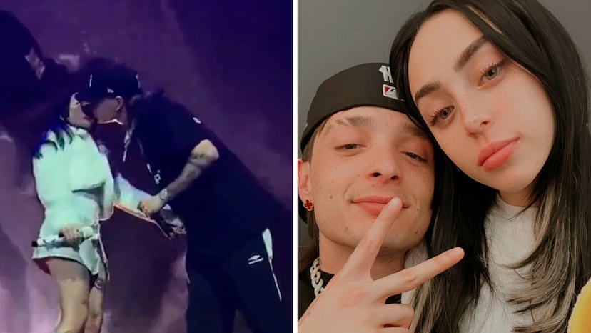 “Quiero agradecer a Nicole por esta invitación tan hermosa y a ustedes por apoyarla”, mencionó el cantante también conocido como Doble Pe. “Gracias por venir, amor”, le respondió la rapera, ante el estallido de gritos de los asistentes, quienes aplaudieron largamente este gesto. Antes de bajar del escenario, el cantante tapatío le propinó otro beso, mientras que Nicki Nicole reía.