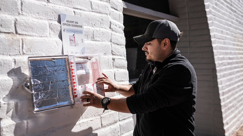 El veneno estaba por todas partes, pero la cura no. Durante años, Círculos de Paz se dio cuenta de que más gente tenía acceso a la ayuda si se le ofrecía de forma anónima. A principios de año, la organización fue un paso más allá e impulsó que se instalaran botiquines en las calles —conocidos como naloxboxes— para que los usuarios de fentanilo pudieran acceder a la naloxona sin necesidad de responder preguntas ni dar explicaciones. Y también para que el antídoto esté listo donde se necesita, como en el parque de la biblioteca. Sobre una pared blanca de ladrillos se lee opioid rescue kit, kit de rescate para opiodes. Cada caja tiene dos empaques de Narcan, el nombre comercial del medicamento, y un instructivo para uso de emergencia en inglés y en español. Fueron colocados en 18 puntos del condado de Santa Cruz, donde está Nogales. Es la única zona de Arizona donde están disponibles.
