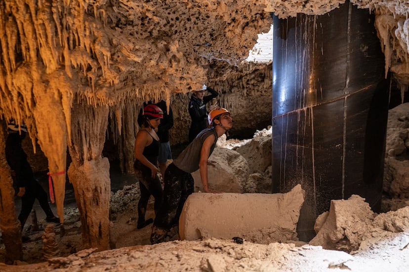 A unos pocos metros de los primeros agujeros de la cueva —a la que los espeleólogos denominaron Oppenheimer— sobresalen dos pilotes de acero. Hasta ahora no se habían conseguido fotografías tan nítidas de cómo el hierro negro rompe la roca. En los cenotes y cavernas turísticos no se permite el ingreso con bloqueador solar, ni repelente de mosquitos, tampoco con maquillaje o sustancias que puedan quedarse en el agua, es en esos mismos espacios donde van a entrar ahora entre 8.000 y 17.000 pilares de hierro.