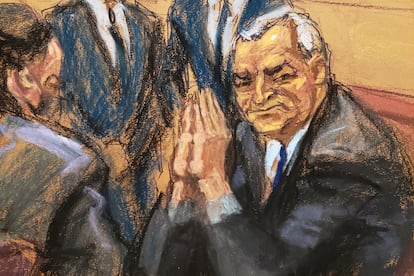 La puerta se cierra sobre García Luna. Ya se ve entre rejas de por vida, en los primeros pasos de su viacrucis personal. Pero sus abogados se la juegan con un farol arriesgado, la última carta que les queda bajo la manga: el 15 de diciembre solicitan un nuevo juicio. Argumentan que tienen pruebas inéditas que echan por tierra la condena —la Fiscalía del Distrito Este de Nueva York, después de investigarlas, solicita al juez Brian Cogan que las rechace por su poca consistencia en comparación con la evidencia anterior— y que cuatro de los testigos en su contra dieron un testimonio contaminado.