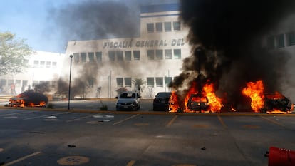 La rabia de los normalistas ha tomado Guerrero. El humo de más de una decena de coches en llamas sitúa la sede de la Fiscalía estatal como el epicentro de los disturbios en la ciudad de Chilpancingo, la capital de la entidad. Los normalistas, alumnos de la Escuela Normal Rural de Ayotzinapa, compañeros de los 43 jóvenes desaparecidos desde hace casi 10 años, se han echado a las calles en un grito desesperado. Es la respuesta de los estudiantes, curtidos en la lucha social y el movimiento obrero, al anuncio que ha realizado este martes el presidente. Andrés Manuel López Obrador ha reconocido en su conferencia diaria de prensa que el policía estatal que asesinó el pasado jueves al normalista Yanqui Kothan ha huido gracias a la ayuda de las autoridades.