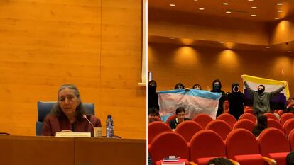 Un grupo de estudiantes con banderas del colectivo trans y no binario han reventado este miércoles un acto de la antropóloga mexicana Marcela Lagarde en la Facultad de Ciencias Políticas de la Universidad Complutense de Madrid. Con gritos como “Aquí está el lobby trans” y “Fuera terfas (feministas radicales transexcluyentes) de la universidad”, los activistas han interrumpido el discurso de Lagarde cuando hablaba sobre el borrado histórico que han vivido las mujeres a lo largo de los siglos y la necesidad de recuperar la genealogía feminista, los hallazgos y las historias de todas ellas. “Sobrevivir como feminista y como mujer en algunas partes del mundo es un reto”, ha señalado la académica.