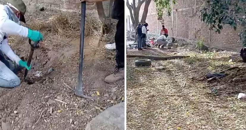 En las imágenes compartidas por las madres buscadoras se observan a personas excavando con palas en las presuntas fosas clandestinas donde se aprecian bolsas de plástico negras con restos humanos. Mientras avanza se puede ver la misma escena en otras de las excavaciones, también se aprecian algunas prendas textiles y botellas de ácido muriático.