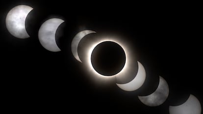 Cuando las nubes amenazaron con cubrir por completo el cielo de Torreón (Coahuila), la cuenta atrás para la totalidad del eclipse en el Bosque Urbano, el parque más grande de la ciudad y sede elegida por la NASA para retransmitir el fenómeno, se llenó de pesimismo. La fiesta de miles de entusiastas que esperaban desde hace horas el momento en el que la Luna cubriría por completo al Sol se diluía en un murmullo. “Si sigue así, no se va a ver nada”, se quejaba una mujer que había instalado su telescopio desde hace horas. “¡Vamos, vamos, buena energía!”, respondía un hombre para animar a sus hijos. Media hora antes de la totalidad, una serie de aplausos y vítores reanimaron las aspiraciones de científicos, astrónomos aficionados y turistas: el Sol, cubierto a la mitad por la Luna, volvía a asomar a través de un claro. Se trató del inicio de una montaña rusa de emociones que se apoderaron de las 50.000 personas que, desde todas partes del mundo, se concentraron en Torreón para ser testigos de cómo un eclipse total provocaba la oscuridad en pleno día, el fenómeno astronómico más vistoso de todos y el primero visible en el país desde hace más de tres décadas.