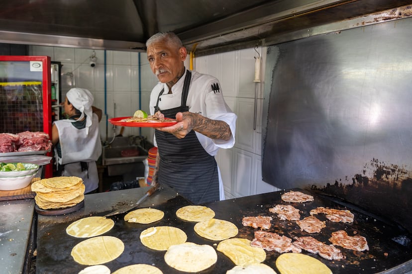 Es la una de la tarde del jueves 16 de mayo y la gente aplaude y grita de júbilo. Una fila de treinta metros se extiende sobre la avenida Ribera de San Cosme. Ese montón de gente lleva ahí desde las 11 de la mañana esperando probar y saber por qué la taquería El Califa de León ha ganado una estrella Michelin. El entusiasmo es porque la carne por fin ha llegado. “Ayer se nos terminó todo a las 11 de la noche”, comenta Mario Hernández Alonso, dueño del sitio. “Hoy nos tardamos en traerla porque fuimos a buscar piezas de la más alta calidad para darnos abasto y pagarle a esta gente su tiempo de espera”, dice emocionado. Sus ojos se llenan de lágrimas, la voz se le quiebra cuando habla del reconocimiento otorgado por Michelin.