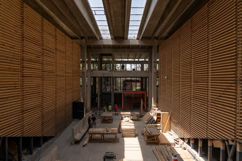 Los obreros trabajan contrarreloj para poder concluir un proyecto que estaba previsto abrir sus puertas en junio, pero que se ha retrasado por una serie de problemas logísticos, que incluyen la escasez de materiales como el acero. Ese producto se encareció durante la pandemia de covid-19 y los proveedores tardaron en garantizar el necesario para continuar con la construcción del nuevo complejo, explican desde Cultura. Un equipo de EL PAÍS visitó la construcción, donde hasta ahora está terminada una de las salas, en la que se ha colocado ya la enorme pantalla cinematográfica de tecnología coreana. También lucen impecables los asientos, amplios y cómodos. Las salas están construidas en acero y concreto, pero cuentan con una hermosa cubierta exterior hecha de finas varas de madera, que refuerzan el tono moderno, minimalista, que ha querido imprimir en el complejo el arquitecto Mauricio Rocha, a cargo del diseño de esta Cineteca.