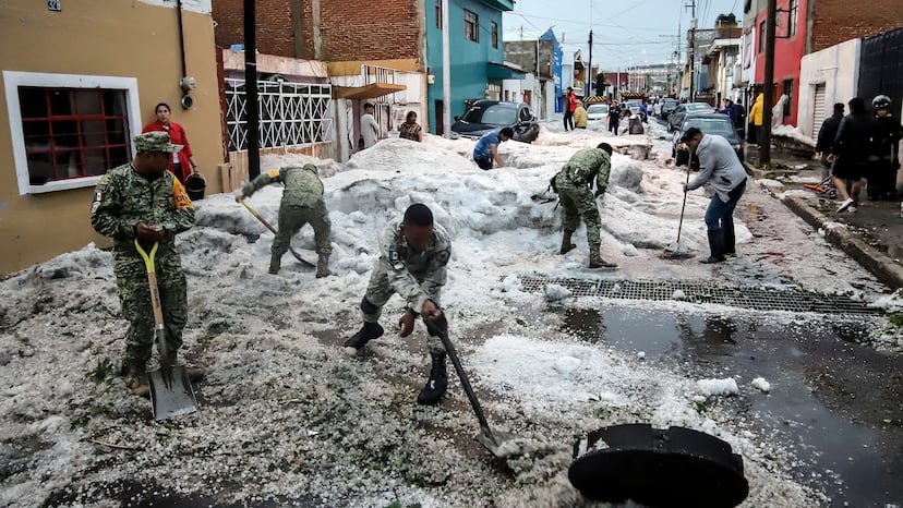 Las calles de Puebla, cubiertas de hielo tras una fuerte granizada