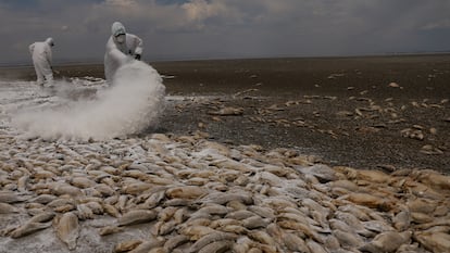 Las autoridades locales han intentado cubrir los peces con cal para evitar peligros sanitarios por la descomposición de los cadáveres. Ganaderos locales también han expresado preocupación ante la falta de alimento y agua para sus animales.