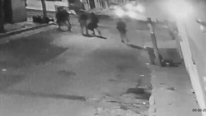 La colonia Industrial, donde tuvo lugar el crimen, está situada cerca del centro de León, uno de los grandes municipios de Guanajuato, en el corredor industrial del Estado. A las 21.10, cinco agentes de la Guardia Nacional llegaron a la vivienda donde estaban Naomi, Aracely, Nayeli y Ana Cristina, junto a los dos niños. Aparecieron caminando por la esquina de enfrente, vestidos con ropa táctica y con las armas a la vista. Cruzaron la calle despacio, incluso hablaron con un vecino, según se observa en el video. Salieron siete minutos después, cargando lo que parece una bolsa de basura negra llena. Se marcharon rápido. Cinco minutos después llegaron los sicarios a bordo de una camioneta.
