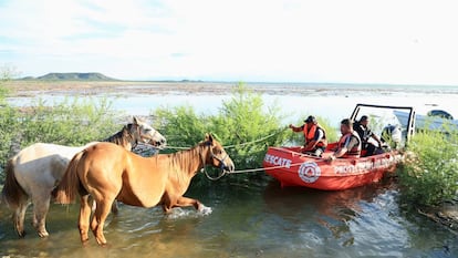 Los animales fueron trasladados por lanchas de Protección Civil hasta terreno seco