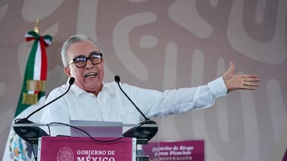 Las primeras imágenes de los narcobloqueos y los enfrentamientos armados entre miembros del Cartel de Sinaloa y el Ejército mexicano en Jesús María, al norte de Culiacán, se esparcieron como pólvora alrededor de las cuatro de la tarde del jueves. Una hora antes, el gobernador de Sinaloa, Rubén Rocha Moya, tomaba un vuelo a Ciudad de México para reunirse este viernes con el presidente, Andrés Manuel López Obrador, y la presidenta electa, Claudia Sheinbaum. Poco antes de las siete de la noche, Rocha salió a apagar las versiones de que el último estallido de violencia en el Estado, el más intenso desde la detención de Ismael El Mayo Zambada y el asesinato de su rival político Héctor Cuén el pasado 25 de julio, habría sido causado por el intento de un nuevo golpe contra el cartel y llamó a la población a guardar la calma. “Todo tranquilo en Sinaloa”, declaró el mandatario estatal a su salida de Palacio Nacional, la sede del Gobierno federal, un día después del llamado jueves negro. “Fue un incidente, pero no tiene más consecuencias”, agregó.