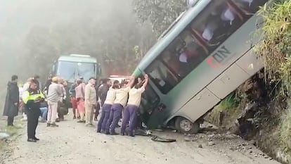 Un autobús turístico en el que viajaban 20 pasajeros, entre ellos un grupo de mexicanos, hacia las ruinas de la ciudad de Machu Picchu, en Perú, ha sufrido un accidente sobre las 11:15 de este lunes, hora local. Al menos cuatro mexicanos han resultado heridos “con fracturas múltiples” tras volcar el vehículo en la localidad de Aguas Calientes, a ocho kilómetros del santuario inca, de acuerdo con la Secretaría de Relaciones Exteriores de México. No ha habido víctimas mortales.