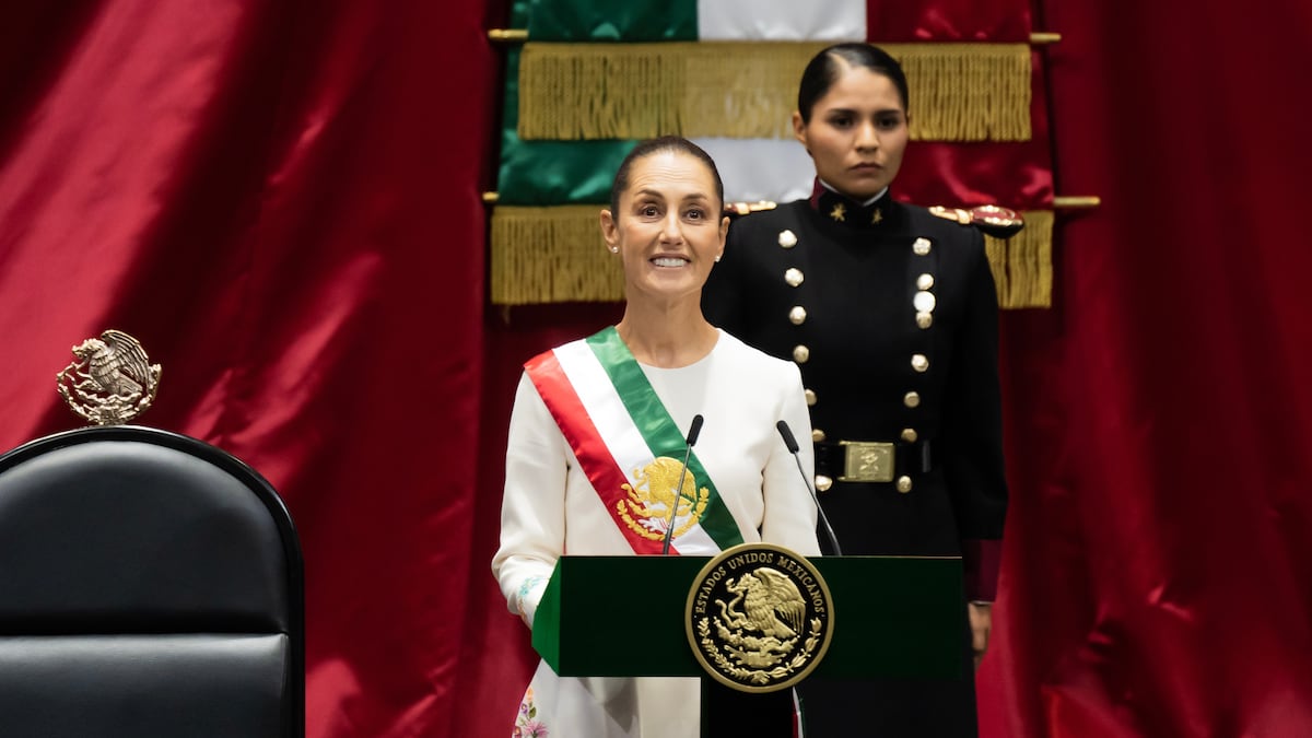 A petición suya, Sheinbaum, que ha usado un vestido bordado por una artista indígena, ha sido recibida por una comitiva estrictamente conformada por legisladoras. Al dar su primer discurso, ha pedido: “Hago una respetuosa invitación a que nombremos presidenta, con ‘A’ al final, al igual que abogada, científica, soldada, bombera, doctora, maestra, ingeniera, con ‘A’, porque, como nos han enseñado, solo lo que se nombra, existe”. En el recinto legislativo, las y los diputados y senadores de Morena, el PVEM y el PT, el bloque oficialista, rompían en gritos de “¡presidenta, presidenta!”. En el pleno de la Cámara de Diputados estaba ya Andrés Manuel López Obrador, el fundador de Morena e indiscutible dirigente de la izquierda mexicana, que ha acudido al recinto legislativo a hacer entrega de la banda presidencial, el símbolo de autoridad del Ejecutivo.