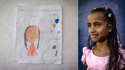 Desireé era muy pequeña cuando dejó Venezuela. En sus cortos siete años de vida, ha atravesado siete países a pie hasta llegar a México. Ella y su madre vivieron un tiempo en Perú, pero después la familia decidió pedir asilo en Estados Unidos. Para llegar hasta el norte, tuvieron que cruzar la peligrosa selva del Darién, entre Colombia y Panamá. Después, Costa Rica, Nicaragua, Honduras y Guatemala. Al llegar a México, cerca de Tapachula, su madre cuenta que casi fueron secuestradas por el crimen organizado. Sin apenas dinero ni contactos, se unieron a una caravana de personas y atravesaron parte del país a lomos de La Bestia, un tren de mercancías en el que muchos migrantes han resultado heridos o han muerto tratando de subir en marcha. “El tren va muy rápido, tiene ruedas y es muy grande”, dice Desireé. “Mi mami le pagó a un señor para poder montarnos y cuando arrancó era de noche y hacía mucho frío; casi me caigo porque no te puedes agarrar. Lo malo es que llega hasta un punto y luego te deja”, dice la niña.