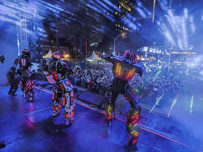 Hay un viaje muy claro de la cultura sonidera para llegar hasta este punto. La casilla de salida se puede ubicar en marzo de 2023, cuando más de 30 proyectos sonideros se presentaron en la plancha del Zócalo de la capital en un evento multitudinario. Más tarde, en octubre de ese mismo año, el Gobierno de la Ciudad de México decidió catalogar al movimiento como patrimonio cultural inmaterial de la capital y, para la noche de Año Nuevo de 2024, invitó a Polymarchs a amenizar la tradicional fiesta en el Ángel de la Independencia con la “discoteca más grande del mundo”. Esta es la ola a la que quiso subirse Boiler Room, según cuenta su programador musical Joe Howard, que estuvo a cargo de la sesión con los sonideros. “No creo que esta cultura difiera mucho de la que existe alrededor de la música electrónica. Ambas proveen espacios para que la gente baile, socialice y haga comunidad”, reflexiona sobre la decisión de realizar este evento.
