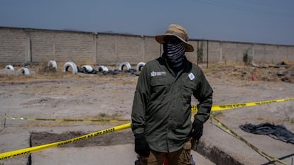 Al mazazo por el macabro hallazgo el 5 de marzo ha seguido el estupor por el trabajo chapucero de la Fiscalía estatal de Jalisco, que entró en el rancho el pasado septiembre y detuvo a 10 personas, rescató a dos y sacó de allí un cadáver. Y poco más. El recinto quedó supuestamente precintado, pero hasta dos vehículos han robado allí en los meses que siguieron a aquella operación. Estaba prácticamente abandonado. Poco o nada se sabe de los supervivientes, no se tomaron las declaraciones oportunas, ni las huellas dactilares, ni siquiera se preguntaron por la propiedad del rancho, a pocos kilómetros de Guadalajara, una de las capitales más prósperas de México. Todo lo ha denunciado públicamente el fiscal general, Alejandro Gertz Manero. Tal desidia se explica en México por el miedo al crimen organizado o por estar conchabados con él y estos descalabros con las autoridades policiales son comunes por todas partes. La Fiscalía General se ha hecho cargo del caso, se han sacado todas las ropas, zapatos y objetos y se han mostrado al público por si algún familiar reconoce las prendas de sus desaparecidos. Pero el enfado con la investigación estatal es desmesurado. Tantas pistas desperdiciadas. La finca está ahora completamente horadada, porque han hecho calas en el suelo para buscar pistas. En algunos de esos agujeros, una banderola roja indica que hay “positivos”. En ciertos rincones hay montículos cenicientos.