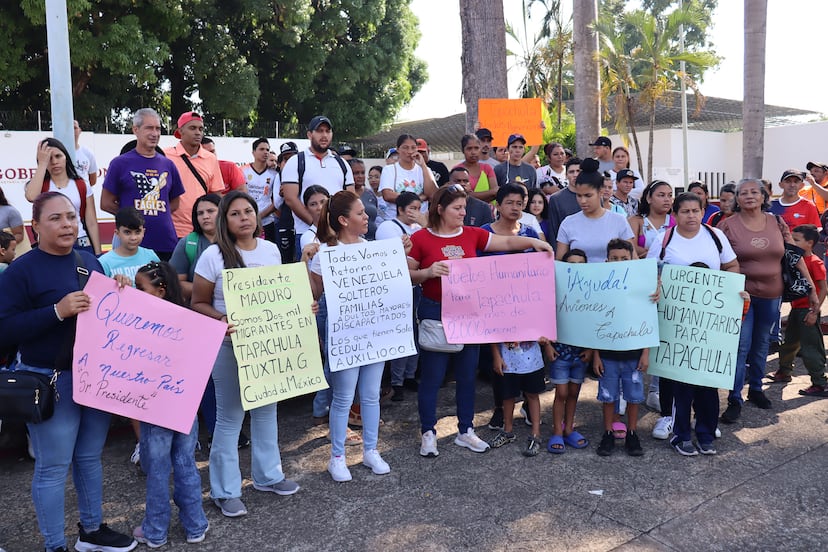 Migrantes venezolanos se han manifestado este martes en la estación Siglo 21 del Instituto Nacional de Migración en Tapachula, exigiendo la gestión de vuelos repatriación. Los participantes en la protesta denunciaron que han habido demoras y confusión en los viajes humanitarios, a pesar de que la presidenta Claudia Sheinbaum sostiene que las rutas se han reanudado desde el miércoles pasado.