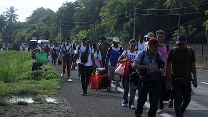 Este periódico habló con una veintena de migrantes que viajaban en la caravana de este miércoles y todos dijeron querer quedarse en México, pero que ya no soportan vivir más en Tapachula. También denunciaron que en los últimos meses el trámite para solicitar una residencia humanitaria en la frontera sur se ha vuelto imposible. Algunos dijeron haber esperado desde tres hasta diez meses sin ningún resultado. “Mi última cita la tuve hace más de un mes y apenas voy por la tercera firma. ¿Tú te imaginas cuánto tiempo más tengo que pasar aquí esperando?”, dijo una cubana llamada Yoalmi que viaja junto a su esposo y dos hijos.