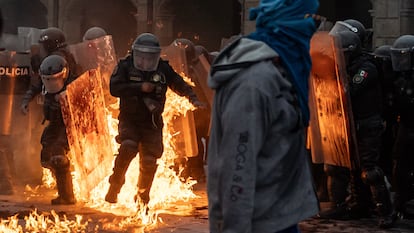 Brugada ha querido diferenciar la actuación policial del jueves con la militar sucedida en 1968. “A diferencia de 1968, en nuestra ciudad la policía no reprime, nuestra policía construye paz, protege a la ciudadanía y ha contribuido a la reducción de la inseguridad”, ha expuesto en su mensaje. Unas declaraciones que siguen la defensa de la actuación por parte del secretario de Seguridad de la capital, Pablo Vázquez Camacho, que insistió en que actuaron “bajo los protocolos” policiales, bajo una línea de contención y encausamiento. Los altercados tuvieron su mayor explosión a la llegada al Zócalo. Las imágenes difundidas reflejan las embestidas de los policías contra algunos manifestantes y reporteros. Algunos de ellos, como los fotógrafos de Publimetro y La Razón resultaron heridos, según explicaron los propios medios en sus comunicados.