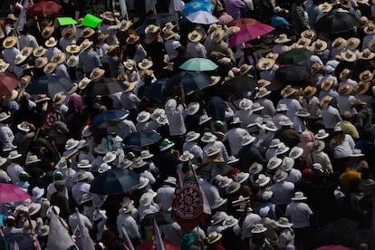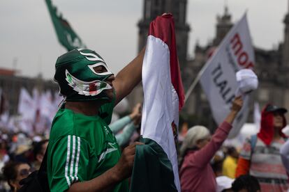 Luz Elena González y Alicia Bárcena durante el mensaje Claudia Sheinbaum en el Zócalo de Ciudad de México, este domingo.Presidencia de MéxicoEl Palacio Nacional durante el informe de Claudia Sheinbaum. La presidenta hizo un recordatorio de su lucha contra la corrupción, uno de los preceptos de Morena y su fundador, el expresidente Andrés Manuel López Obrador. Rodrigo Oropeza “Recibí la herencia de un hombre honesto y comprometido, el presidente López Obrador", señaló Sheinbaum durante su discurso. Rodrigo OropezaUna mujer se cubre con un sombrero con el nombre de la presidente mexicana.Quetzalli Nicte Ha GonzálezSheinbaum destacó la reducción de la pobreza, que pasó de 45% en el país durante la “larga noche neoliberal”, hasta el 29% donde se encuentra ahora.QUETZALLI NICTE-HA“La honestidad no es la excepción, es la regla. Quien traiciona al pueblo enfrenta a la justicia”, aseguró la presidenta de México.Rodrigo OropezaDesde temprana hora, miles de personas comenzaron a llegar a pie, desde las estaciones del Metro más cercanas o en autobuses que los transportaron hasta el lugar. Quetzalli Nicte Ha González La mandataria anunció este domingo tres nuevos programas. Uno contempla recursos para todas las mujeres de 60 a 64 años. El segundo extiende las becas Rita Cetina, que envían bimestralmente 103 dólares a toda familia con estudiantes en secundarias, a los estudiantes de primarias. El tercero amplía la red de médicos que atiende a adultos mayores y discapacitados a domicilio. Henry Romero (REUTERS)“Son 13,5 millones de mexicanas y mexicanos los que salieron de la pobreza. Es un logro que no podrá borrar ninguna campaña de odio ni las mentiras de la derecha. Es un hecho irrefutable”, afirmó la mandataria durante su mensaje.QUETZALLI NICTE-HA (Quetzalli Nicte Ha González)Un asistente acude con un disfraz de ajolote durante el primer informe de Gobierno de Claudia Sheinbaum.QUETZALLI NICTE-HA