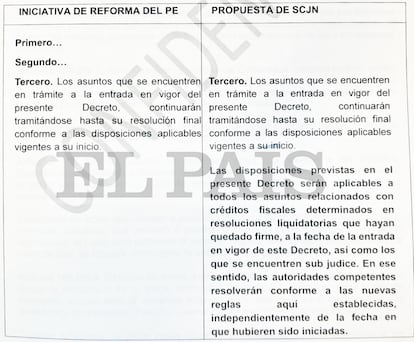La propuesta que llevó la Corte a la consejera jurídica, reflejada en un documento al que ha tenido acceso EL PAÍS, mantenía lo dispuesto por Sheinbaum para la fase de tramitación, pero apuntalaba: aquellos asuntos relacionados con créditos fiscales firmes que estuvieran ya en fase de resolución o ejecución caerían también bajo el paraguas de la nueva reforma, sin necesidad de esperar a un nuevo amparo. Una tercera redacción, que fue la que aprobó finalmente el Senado y que nadie reconoce haber escrito, lleva mucho más lejos la propuesta del Poder Judicial y establece que todos los procesos iniciados, con independencia de en qué fase se encuentren y de qué materia versen, serán tratados conforme a lo estipulado en la nueva reforma. Este salto sobrepasa el marco constitucional, que prohíbe aplicar retroactivamente leyes nuevas en perjuicio de las personas. Fuentes de la presidencia de la Corte aseguran que el texto final no refleja su intención y que es inconstitucional, como han señalado numerosos expertos.