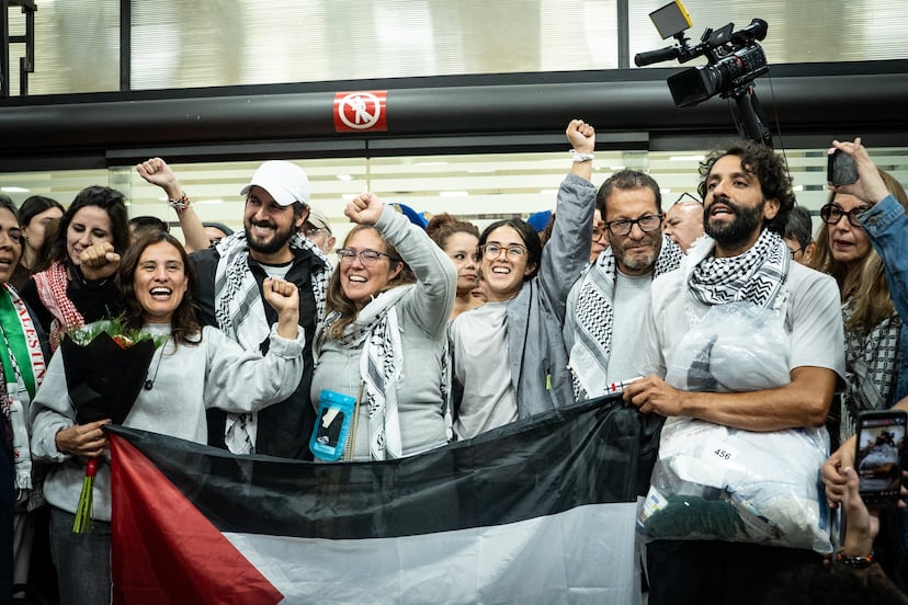 La travesía que se convirtió en odisea llega a su fin. Los activistas mexicanos Ernesto Ledesma Arronte, Arlín Medrano, Laura Alejandra Vélez Ruiz Gaitán, Carlos Pérez Osorio, Sol González Eguía y Diego Vázquez han aterrizado la mañana del miércoles en el aeropuerto de Ciudad de México tras ser repatriados desde Israel. “Es momento de poner los ojos en Gaza. Esto no se trata de nosotros, se trata de ellos, los palestinos”, fueron las primeras palabras de Vázquez ante la prensa tras el largo trayecto de vuelta que comenzó la madrugada del martes. “Sufrimos maltrato, vejaciones, nos dejaron sin agua ni medicamentos. Aun así, lo volvería hacer”, dijo el activista, quien pasó junto a sus compañeros cuatro días en celdas incomunicadas de la prisión israelí de máxima seguridad de Ketziot, en pleno desierto.