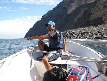 Normalmente, el biólogo marino no suele sumergirse a más de 20 metros. Pero le habían pedido no marcar mientras había actividades turísticas. “La única hora a la que se podía era a las 12, cuando los animales nadan muy profundos, a 40 metros”, cuenta. El científico sólo pensaba quedarse pocos minutos a ese nivel del mar. Pero ese fue el instante en el que ocurrió el incidente. La manguera por la que respiraba ya no le daba suministro de aire, así que el científico corrió a agarrar el octopus, el tubo de emergencia del equipo. Y empezó a ascender despacio. “A esas profundidades, no puedes mantener el aire al subir, porque cuando baja la presión se expanden los gases y pueden explotar los pulmones o la pleura”, relata. Entre el agua que le había entrado en el visor y la cantidad de sangre apenas podía ver cuando apareció la luz del mediodía como un resplandor y, con ella, la enorme sombra de la hembra que la había mordido. “Me rodeó dos veces, pero no me hizo nada. Por eso, insisto, si hubiera sido un ataque, ella me hubiera seguido y acaba conmigo. Tenía la fuerza y el poder”, recalca.