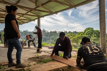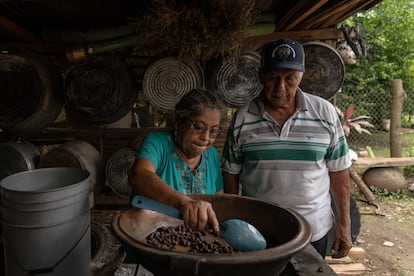 Entre el olor a tierra mojada y el humo de leña que inunda el aire, su proyecto ha reunido a varios agricultores en el ejido de La Trinidad, en las faldas del volcán Tacaná. Las calles están repletas de árboles de café que crecen silvestres, asomando las preciadas cerezas rojas. Aquí se reúnen dueños de plantaciones y trabajadores para aprender a preparar mesas de secado, lo que les permitirá evitar que el café se llene de hongos o fermente al dejarlo al sol en el suelo. Además, facilita vender el café seco, mucho más redituable que venderlo con la pulpa. A pocos metros, las manos curtidas de Edna Morales González preparan las bebidas y alimentos para la actividad. Desde que la plaga de la broca arrasó su cultivo de Arábica, esta agricultora de 63 años decidió solo plantar Robusta, más resistente, aunque menos demandada y, por lo tanto, peor pagada. “Le invertimos todo lo que tenemos al cultivo, a sembrar, a podar, a limpiar el terreno y a los insumos. Pero muchas veces apenas vemos ganancias”, asegura. En estos talleres también ha aprendido a fabricar sus propios fertilizantes y fumigadores, para ahorrar al dejar de comprarlo a grandes empresas.