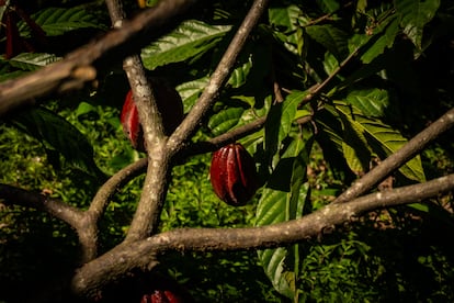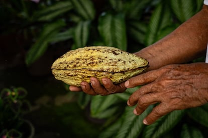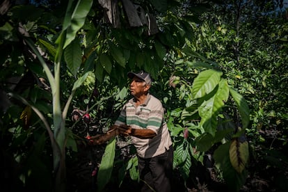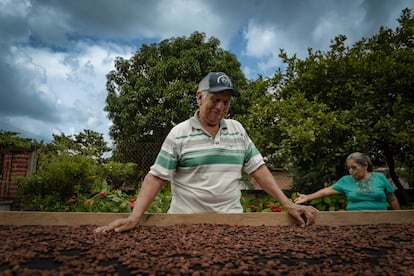 A pocos kilómetros de allí, en el ejido de Río Florido, los productores de cacao maldicen las lluvias que desatan la plaga de la moniliasis. Este hongo, que prospera con la humedad, genera una plaga que deforma las mazorcas y endure las semillas. José Antonio Rodríguez Aguilar, de 72 años, se resigna y dice que ya ha aprendido a convivir con ella. “Aparece cuando más llueve y entonces, de 50 mazorcas de cacao, sólo puedo cosechar 10″, señala. Junto a su mujer, Anita, son de los pocos que siguen apostando por el cacao pese a su ingente necesidad de agua. “Nosotros tenemos suerte porque tenemos un río cerca, pero hay compañeros que no tienen tanta agua. Si tienes un pozo, hay que invertir en una bomba que cuesta 18.000 pesos, pero eso prefieren cambiar la siembra a maíz, nuez de la India o mango”, dice la pareja que ha visto cómo su comunidad ha ido menguando por mudarse al norte. “A mi hijo, un amigo le ofreció irse con él a Estados Unidos, pero le recordamos que los que migran no regresan. Al final me dijo que a él le gustaba el campo y que su futuro estaba aquí”, exclaman orgullosos mientras don José luce con la cabeza alta la gorra de la universidad de su hijo, quien ha estudiado Ingeniería Agroalimentaria y les ayuda con los terrenos.
