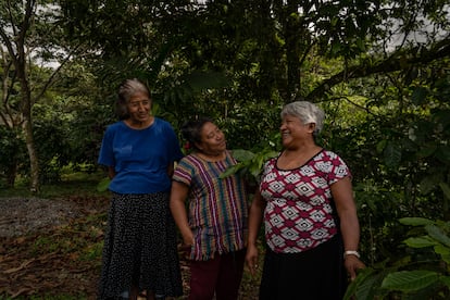 Morales recuerda perfectamente cómo la sequía de hace tres años hizo que la producción bajara a mínimos y esta temporada, con una inusual lluvia que no da tregua, a sus árboles les cuesta madurar el producto sin pudrirse y tornarse negros. Pese a que ha visto cómo los hombres abandonan las plantaciones y migran para trabajar en Tijuana y Ciudad Juárez por un salario más amable, ella se niega a irse. A su lado, Paula Pérez Ortiz, de 69 años, narra como cuida de sus terrenos ella sola. “Tengo una hija que gracias a Dios ya tiene sus estudios y su profesión, me suplica que, cuando pueda, venda el terreno. Pero yo llevo 52 años trabajando el café y les hablo a mis plantas para agradecerles todos los días por darme de comer”, dice orgullosa.