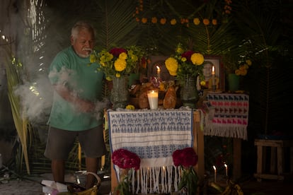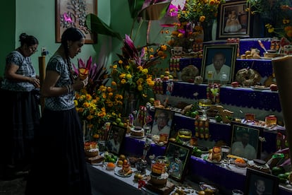 JACKY MUNIELLOEn San Mateo del Mar, Oaxaca, el 1 de noviembre la familia Hidalgo Buenavista coloca la ofrenda para recibir a los difuntos.JACKY MUNIELLO (EL PAÍS)El 1 de noviembre, marca el inicio de la celebración dedicada a las almas de los adultos que regresan a convivir con sus familias, una tradición que reafirma la memoria y los lazos comunitarios en el pueblo ikoots. JACKY MUNIELLO (EL PAÍS)Las ofrendas tradicionales ikoots tienen un altar de tres niveles que representa el inframundo, la tierra y el cielo. JACKY MUNIELLO (EL PAÍS)Los diferentes panes típicos del Istmo de Tehuantepec, son fundamentales en las ofrendas. JACKY MUNIELLO (EL PAÍS)Un altar tradicional de escalones en un hogar zapoteca del Barrio de Jalisco en Santo Domingo Tehuantepec. Victoria Barragán Cruz recibe el alma de su madre Reyna Víctoria con un altar oloroso y colorido, hermosamente decorado con flores, velas, frutas y comida. JACKY MUNIELLO (EL PAÍS)Mujeres zapotecas del Istmo de Tehuantepec visten la ropa típica regional y ponen atención a cada detalle de la ofrenda. El 2 de noviembre, los altares se desmontan y las ofrendas se reparten entre vecinos y familiares, con lo cual finaliza el Xandu’.