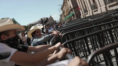 Mientras los policías de Morelia seguían la noche del lunes de guardia tras las vallas metálicas, un camarero de una taquería pegada al Palacio de Gobierno recuerda que el domingo llegaron como “más de 100 personas” a eso de las cuatro de la tarde. “Al principio parecían pacíficos pero se empezaron a calentar los ánimos”, cuenta el joven de 21 años y estudiante de Derecho. “Estuvo raro porque la policía tardó en llegar y ahí ya sí se armó el desmadre con bolas de goma y gas lacrimógeno”.