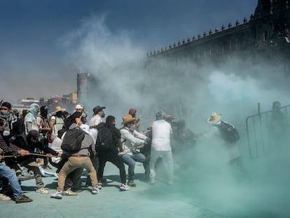 Una de las agentes es una mujer que fue agredida por un manifestante de 50 años. Está en el hospital con fracutra de su clavícula, según ha indicado Brugada. La jefa de Gobierno de la capital, al igual que la presidenta Claudia Sheinbuam ha dicho en su rueda de presa, ha detallado cómo los agentes han resistido por más de dos horas los golpes de los manifestantes que lograron tumbar la valla de protección. “Si alguien hizo uso de la fuerza, pues se tiene que investigar. La policía tiene sus propios mecanismos. Pero esto que ocurrió, estos golpes a la policía, ¿por qué no algunos no hablan de ello y de muchas de las mujeres policías que estaban ahí? Hay que revisar eso también porque, repito, iban contra ellos", ha subrayado Sheinbaum.