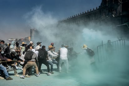 A pesar de las fuertes críticas a la marcha, la presidenta ha asegurado que su rechazo no es a que los opositores protesten sino al empleo de la violencia, que considera que iba dirigida premeditadamente hacia la policía, contra la que cargaron después de conseguir forzar las vallas de Palacio Nacional. “No debemos caer en la provocación, es un llamado a hacer movilizaciones pacíficas”, ha dicho, y ha detallado que investigará, junto con la Fiscalía de la Ciudad de México, quiénes son los grupos que están detrás.