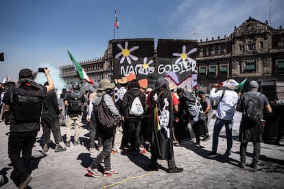 El duro enfrentamiento a las puertas de Palacio Nacional, que dejó decenas de heridos, en su mayoría agentes de la Policía capitalina, así como varios jóvenes detenidos, planteó de nuevo la cuestión de a quién sirve la violencia en protestas que nacen desde la resistencia pacífica. Desde el oficialismo leen que hay una intención oculta de replicar imágenes de caos parecidas a las de Nepal, donde un movimiento organizado a través de plataformas propiamente centennials se trasladó a las calles y logró tumbar a un Gobierno autoritario. La idea de que México es un “Estado fallido” —como se leía en otras pancartas— ha sido tomada por influencers ultraderechistas de Estados Unidos, que intentan pavimentar el camino para la ofensiva regional de la Administración de Donald Trump justificada en el combate a los carteles.