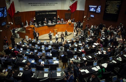 El oficialismo, Morena, PT y PVEM, y el bloque opositor, formado por PAN, PRI y Movimiento Ciudadano (MC), han dado su voto casi sin regateos. La unanimidad rota en la Cámara baja ha revivido este miércoles. La nueva norma, clasificada como un brazo de la Estrategia Nacional de Seguridad, ha logrado la unidad, aunque momentánea, de los dos bloques del país. “Queremos reconocer que estos cambios modifican de fondo preocupaciones que teníamos”, ha dicho la senadora emecista Alejandra Barrales.