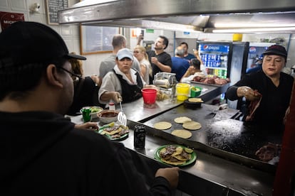 Frente la plancha donde se cocinan los cortes, sazonados con sal gruesa y un chorro de limón, donde también se elaboran las tortillas al momento, un japonés, una pareja de puertorriqueños y un estadounidense esperan a que salga su orden. El consenso de los tres es que los tacos están a la altura de la expectativa.