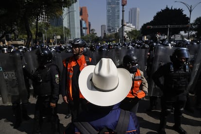 El cordón se ha deshecho una hora y media después, cuando el desfile ha finalizado, para que la protesta avanzara hacia el Zócalo, escoltada por ambos flancos por una masa negra de agentes que avanzaba simultáneamente. El segundo contingente de elementos los ha topado en el corte entre la calle Palma y la 5 de mayo, el punto más cercano a la plaza pública que han podido alcanzar. Un rato después las protestas se han disuelto, vencidas por el cansancio y la ausencia ya de expectativas. El respaldo a Claudia Sheinbaum no ha encontrado, al menos hoy, un equivalente contrario en las calles de la capital. El malestar social, no obstante, sigue ahí.